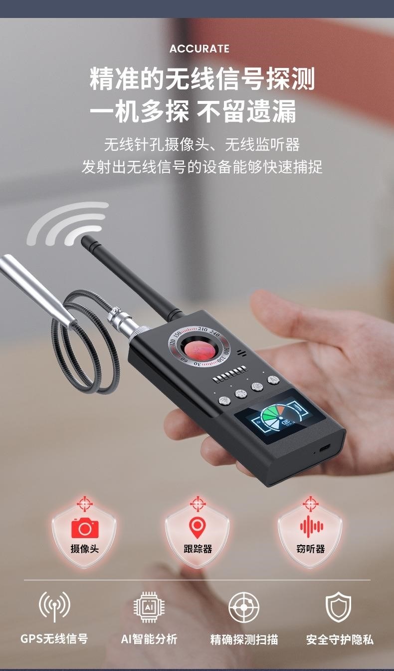 Dựa vào những thông số này, máy phát hiện camera GPS CC310 có khả năng phát hiện mọi thiết bị định vị GPSẩn giấu trong xe cộ hoặc hành lý. Đồng thời, máy cũng giúp bạn phát hiện các thiết bị nghe trộm qua sóng GSM và các camera không dây giấu kín ngụy trang.